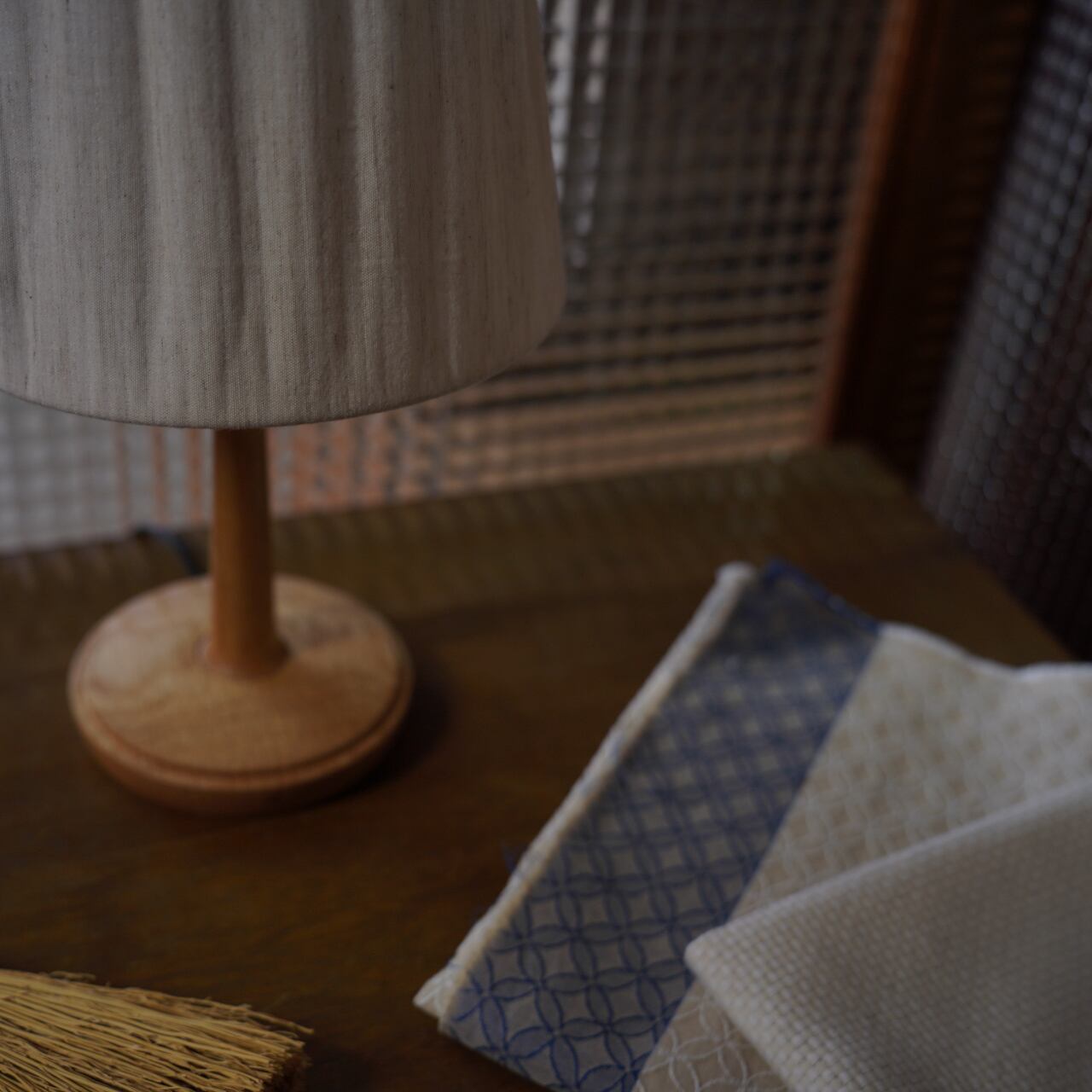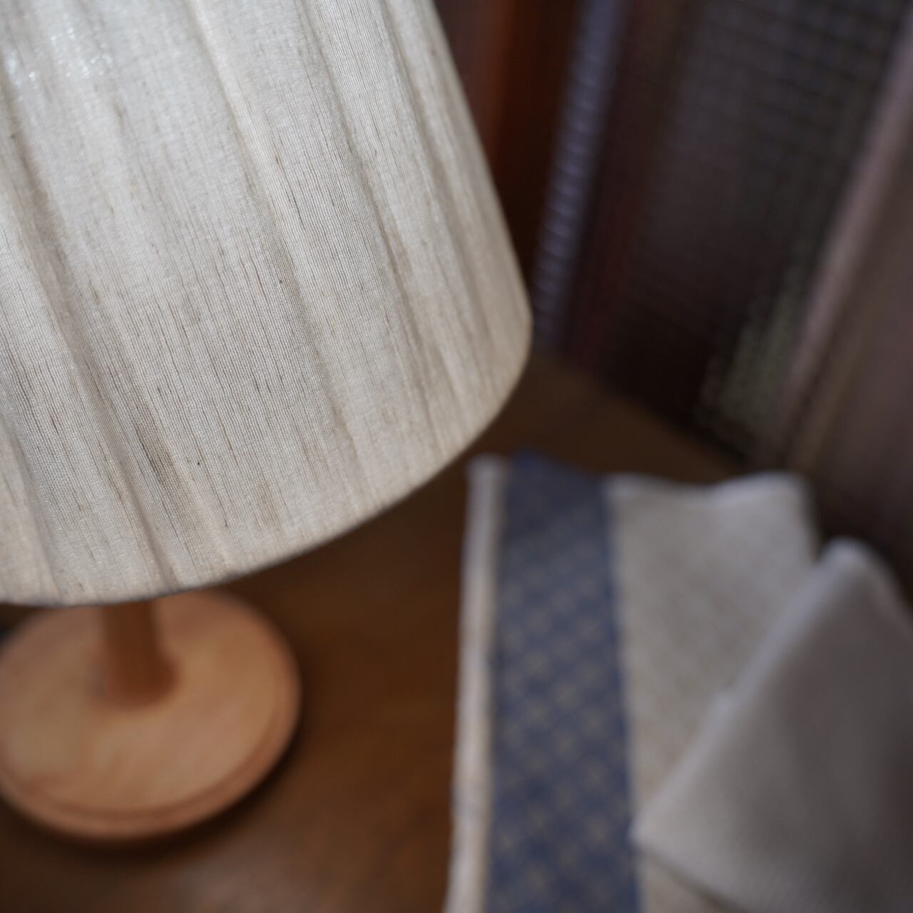 芙蓉(ふよう)の花びらを思わせるタテスジがはいった生地です。ふんわりと柔らかな質感は点灯時にも損なわれず、ひかりをともなって優しさを感じさせてくれます。実は織り方の違う生地が二層になっており、それがまるでその隙間にひかりを含んで閉じ込めたかのような印象を作っています。