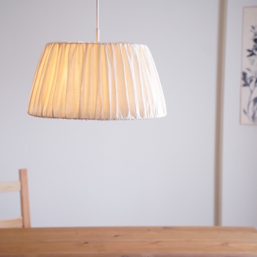 はくの定番生地で作ったシェードのペンダントライトです。